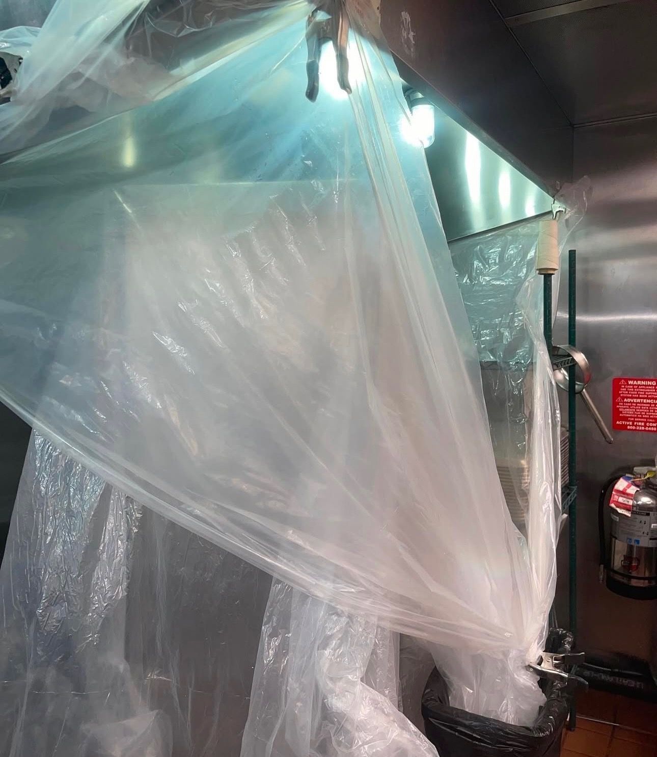 During each service, we use commercial-grade protective coverings to safeguard surrounding appliances, walls, and cooking areas from water or cleaning agents. This controlled containment process minimizes mess, prevents surface damage, and supports a clean, efficient work area throughout maintenance or HVAC duct cleaning procedures.